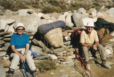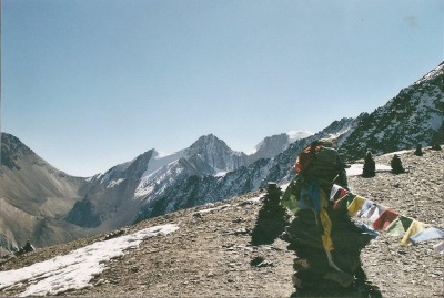 Devant des pierres Mani de prières, à 4000 m