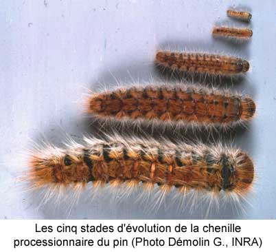 Si leurs longs poils (soies) sont inoffensifs, ces chenilles projettent dans l'air de minuscules poils très urticants qui peuvent provoquer d'importantes réactions allergiques